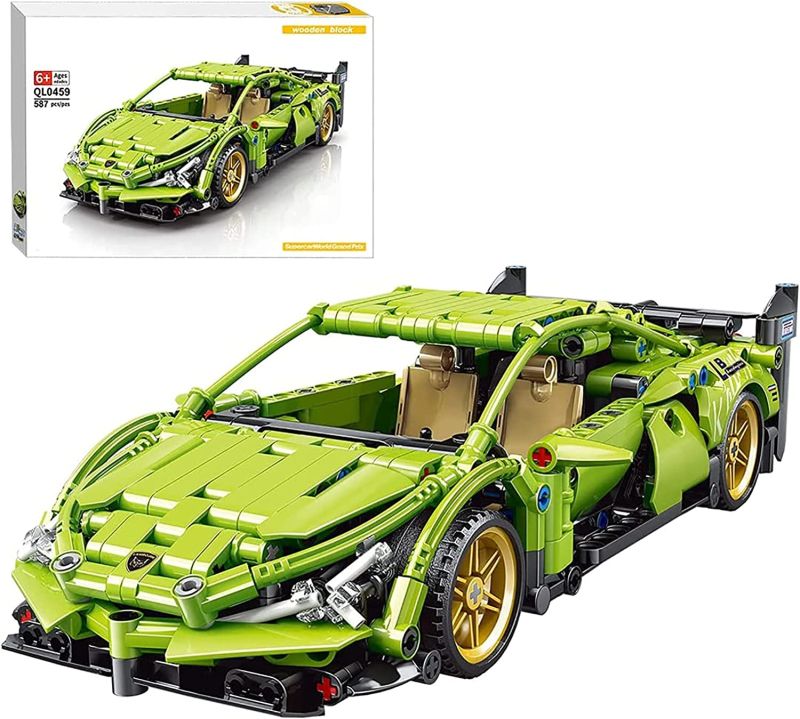 Конструктор за сглобяване на състезателна кола подобна на Lamborghini. Спортна кола в ярко светлозелен цвят с жълт интериор и джанти с ефект на издърпване. Големият капак се отваря, за да разкрие двигателя в целия му блясък. Подарък за добре дошли за момче 6+, но ще бъде интересен и за възрастен. Частите са съвместими с Lego Speed Champions, Lego Technic и подобни. Подробни инструкции с илюстрации. Размер на опаковката 38 х 26,