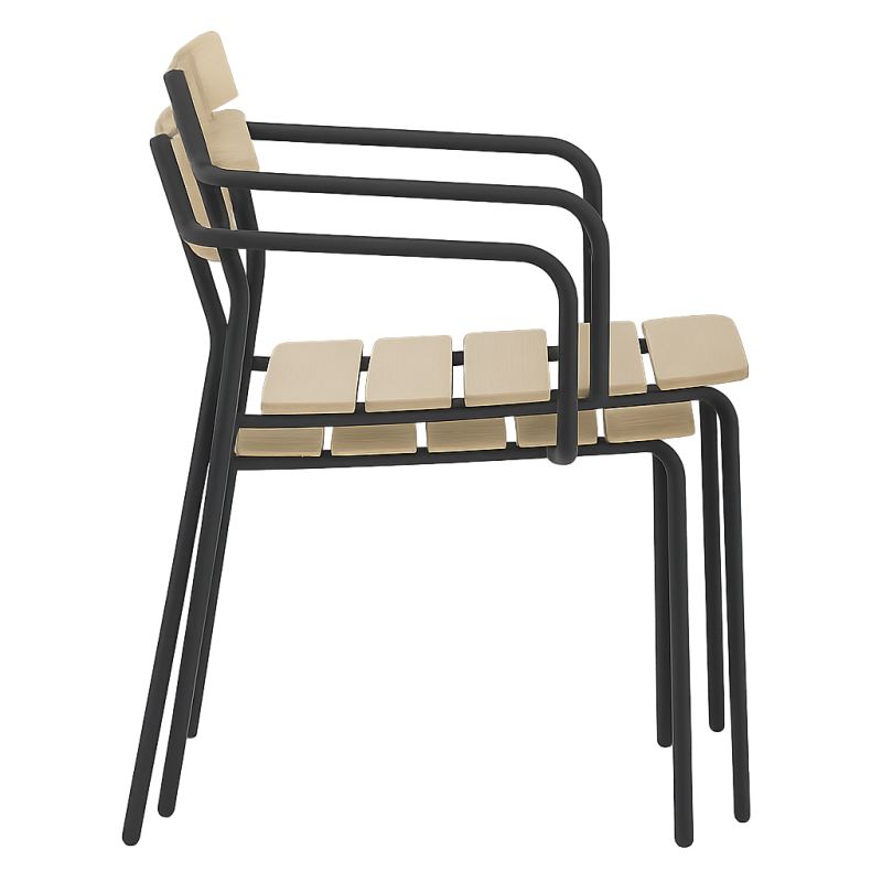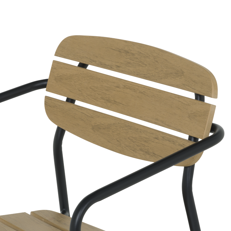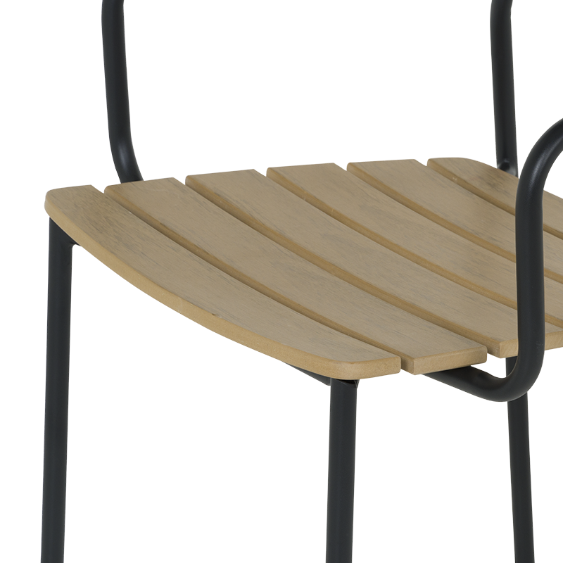 YOBE е семпъл и практичен градински стол, създаден с мисъл за откритите пространства. Здравата му метална конструкция е защитена с антикорозионно покритие, а седалката и облегалката са изработени от POLYWOOD – иновативен материал, създаден от рециклиран полиетилен с висока плътност (HDPE), който имитира естествено дърво. POLYWOOD съчетава устойчивост на UV лъчи, влага и насекоми с минимални изисквания за поддръжка, което го прави идеален избор за дълготрайна употреба на открито. Със своята модерна визия и еко насоченост, YOBE е отлично решение за градина, тераса или къмпинг. Столът може да се стифира, което улеснява съхранението и спестява място, когато не се използва. Това го прави особено практичен за сезонна употреба или при нужда от повече бройки на ограничена площ.