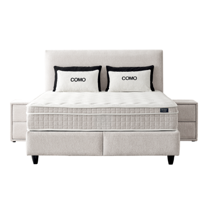 Тапицирана спалня с матрак COMO 160 x 200 впечатлява с усещане за изтънчен комфорт и модерна естетика, където семплата линия среща практичното удобство. Изчистената табла с геометричен профил и мека текстилна тапицерия добавя изящество и подчертава съвременния стил на модела. Включеният двулицев матрак с покет пружини, еластична пяна и пухена вложка съчетава комфорт и поддръжка за качествен сън. Конструкцията му е със средна твърдост и предлага ортопедични качества, подходящи за всекидневно ползване. В основата е вградена практична ракла, осигуряваща удобно място за съхранение и подреденост в спалнята. Пълна информация за размерите и характеристиките на модела ще намерите в таблицата в таб/поле 'Техническа информация'.