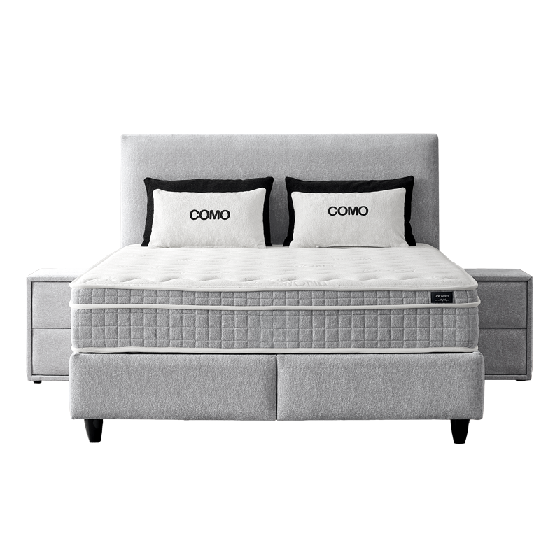 Тапицирана спалня с матрак COMO 160 x 200 носи усещане за изчистен лукс и комфорт, съчетавайки модерен минимализъм с функционалност. Таблата с права геометрия и деликатна тапицерия придава елегантност и подчертава съвременния характер на модела. Матракът е двулицев, с покет пружини, еластична пяна и пухена вложка, което осигурява балансирано усещане между мекота и поддръжка. Структурата е средно твърда и с ортопедични свойства, подходяща за ежедневна употреба и пълноценен сън. Подматрачната рамка е стабилна и включва функционална ракла за съхранение – дискретно и практично решение за организация в спалнята. Пълна информация за размерите и характеристиките на модела ще намерите в таблицата в таб/поле 'Техническа информация'.