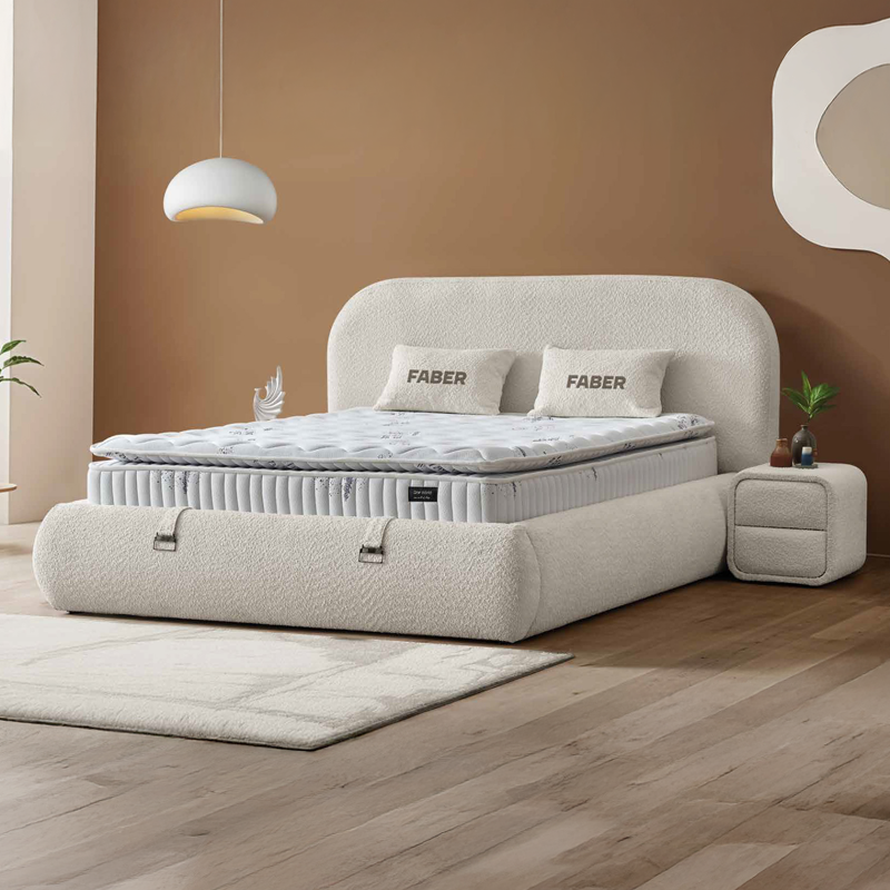 Тапицираната спалня с матрак FABER съчетава модерна естетика с ергономичен комфорт, предлагайки изживяване при сън, което няма аналог. Изработена от висококачествени материали, тя гарантира максимално удобство и дълготрайност, а стилният ѝ дизайн придава изисканост и уют на всяка спалня. Включеният матрак е умерено мек, осигуряващ балансирана опора и комфорт през цялата нощ. Моделът разполага с подсилена подматрачна рамка с амортисьори и ракла за съхранение – идеално решение за спално бельо и багаж. Пълна информация за размерите и характеристиките на модела ще намерите в таблицата в таб/поле "Техническа информация".