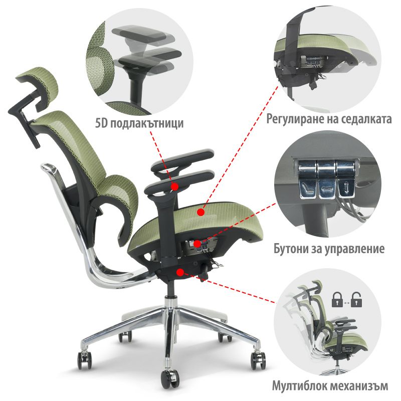 Ергономичен стол CALGARY е стилен и удобен избор за вашия дом или офис, като съчетава модерен дизайн с изключителен комфорт и практичност. Оборудван е с разнообразни функции за регулиране: 3D подглавник, 5D подлакътници, лумбална опора и облегалка и седалка от дишаща мрежа с ергономична форма. Стабилната алуминиева основа и силиконовите колелца правят този стол перфектен за всеки, който цени както удобството, така и ефективността. Още подробности може да видите в таб/поле "Техническа информация"