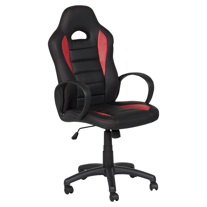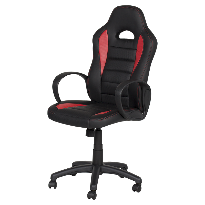 Геймърски стол 7501 от серията офис столове на Carmen е стилен модел с модерен дизайн и качествена изработка. Ефектната комбинация от черна и червена еко кожа му придават атрактивен вид.