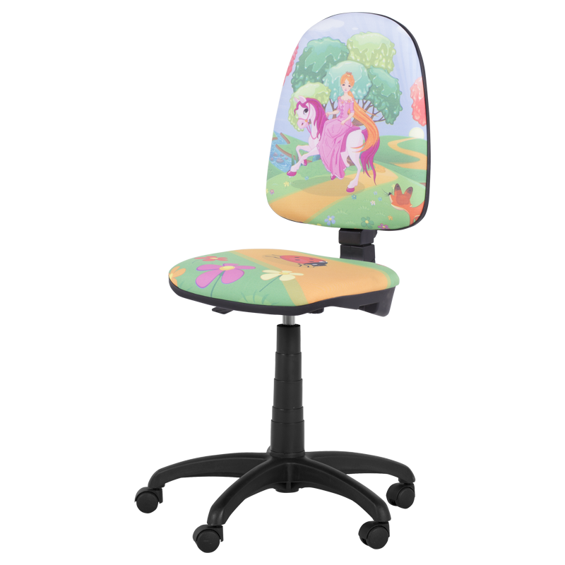 Детски стол Prestige - принцеси е удобен и функционален стол с качествена дамаска. Акцент при стола е апликацията на дамаската, която е с анимационни мотиви и пасва изключително добре на цветния интериор на детската стая. Пълна информация за размерите и характеристиките на модела ще намерите в таблицата в таб/поле "Техническа информация".