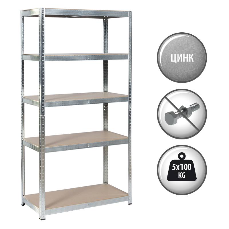 Метален стелаж Carmen CR-1010 - 150х75х30 см, до 100 кг на рафт - цинк