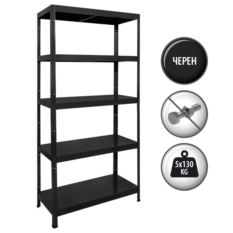 Метален стелаж HARD 180x90x40 см, до 130 кг на рафт - черен