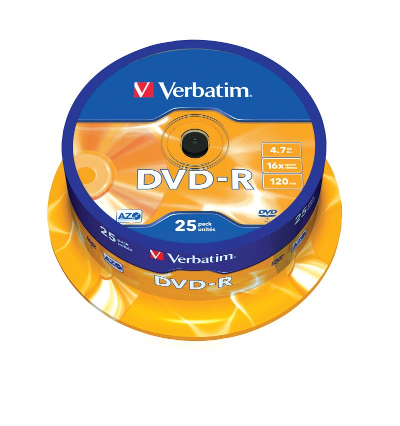 DVD-R Verbatim 4.7GB 16x, опаковка 25 броя на шпиндел