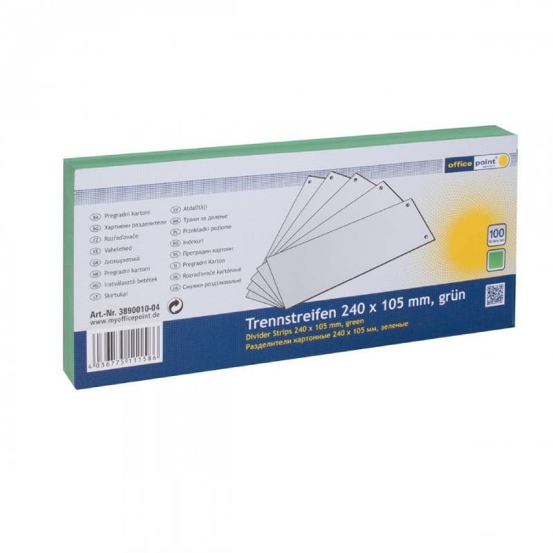 Разделител Office Point картонен, хоризонтален, 100 бр. Зелен