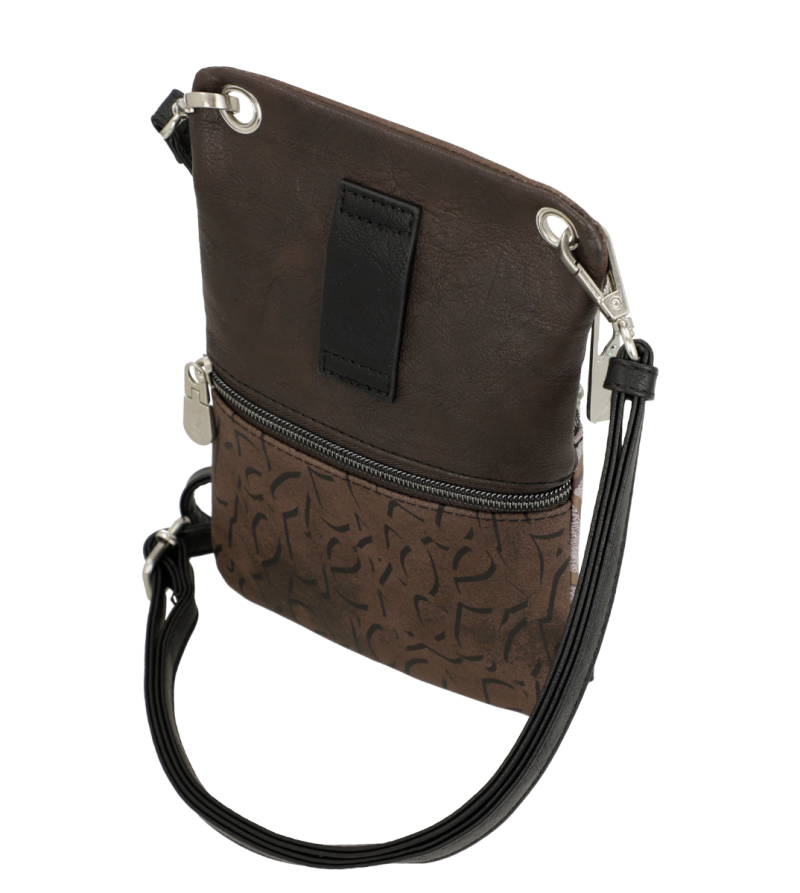 Вид:Висококачествена еко кожа Вид на затваряне: Цип Джобове:2 предни джоба и 1 заден с цип Тип дръжка: Регулируема дръжка Размери:15x23x2 см Вътрешен състав: 100% ПОЛИЕСТЕР