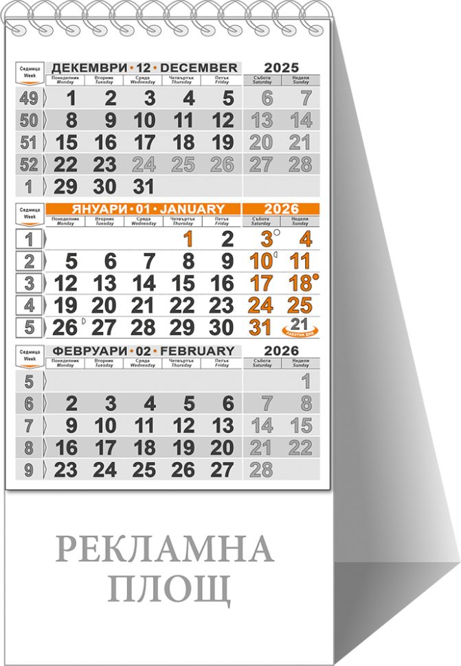 Работен календар-пирамидка КП 1, вертикална, черен/оран