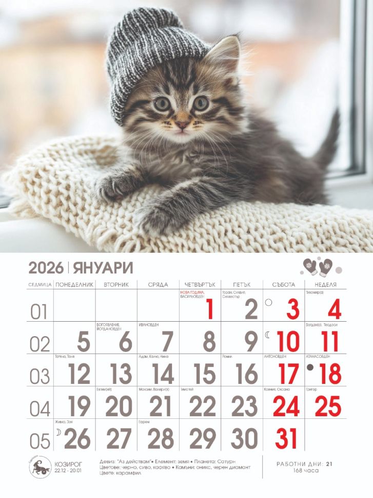 Стенен календар 8-листов, котета