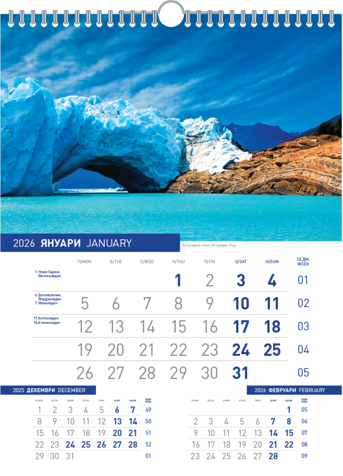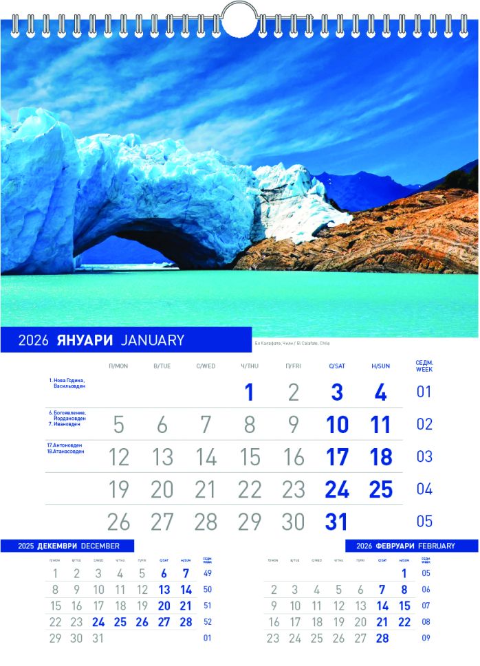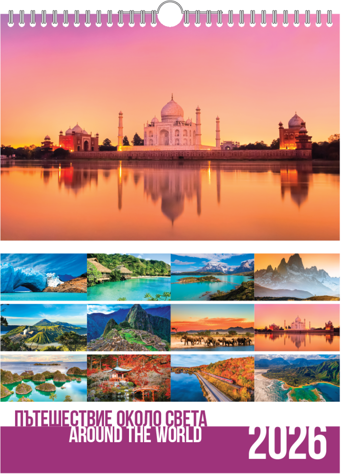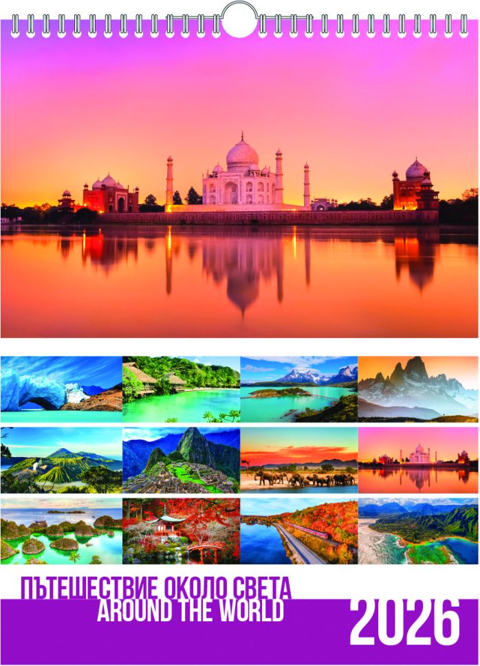 Стенен луксозен 13-л календар, спирала, пътешествия
