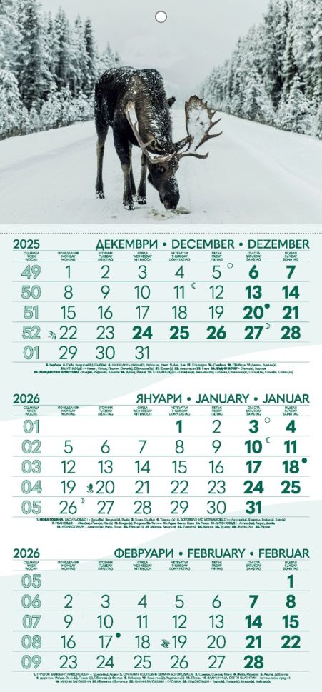 Възможност за глава (рекламнаплощ) размер: - 29.5 x 22 cmВъзможност за изработванена календар с цветна главапо индивидуален дизайн ифонирана подложка (31.5 x 69 cm)или готов дизайн по каталог -
