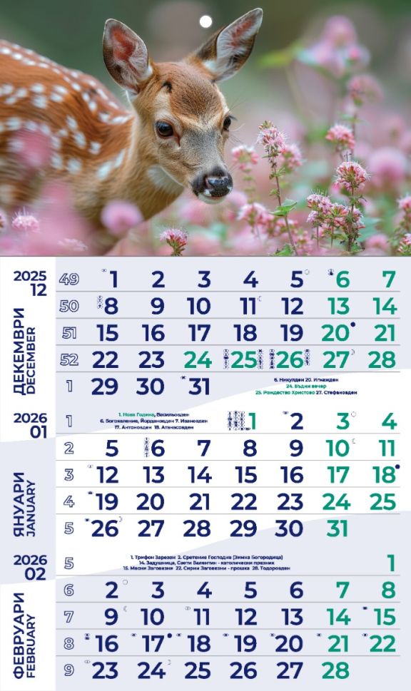 Възможност за глава (рекламнаплощ) размер: - 28 х 22 cmВъзможност за изработванена календар с цветна главапо индивидуален дизайн ифонирана подложка(30.5 x 65 cm)