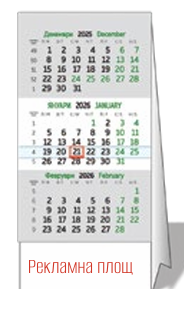 Тяло: 8.5 х 15 cm. Офсет. Печат 2 цвята. 2 езика - BG/ ENПодложка: 300 g едностранно хромов картон. Календариум за 2024 на гърбаРекламна площ 8.5 х 3 cm в долната или горна част. Прозорче за отбелязванена текущата датаВъзможност за изработване по индивидуален дизайн - формат, картон и цветност по избор.