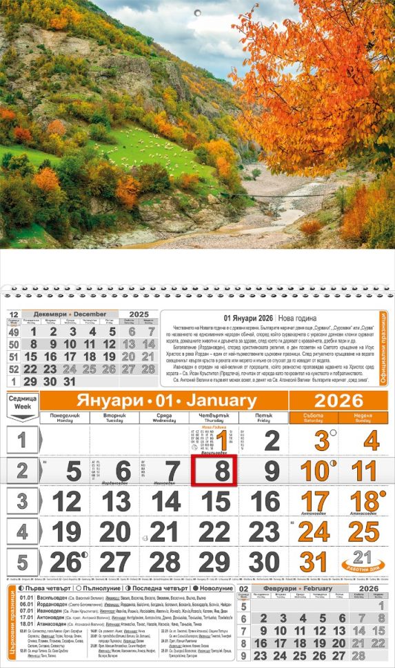 Стенен работен календар КС 12 с цветна глава,1секция, No 5