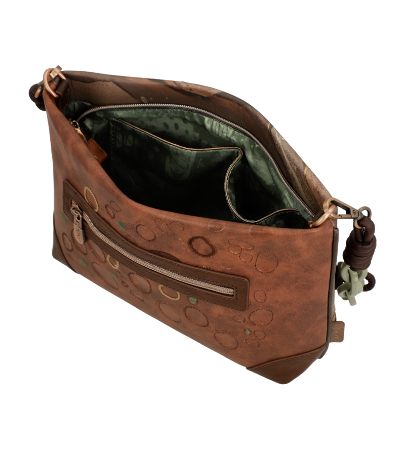 Вид: Висококачествена еко кожа Вид на затваряне: Цип Джобове: 1 основен и 1 заден с цип, 2 без цип за мобилен телефон и ключове Тип дръжка: 1 регулируема дълга дръжка и 1 за рамо Размери: 29 x 19 x 12 см Вътрешен състав: 100% полиестер