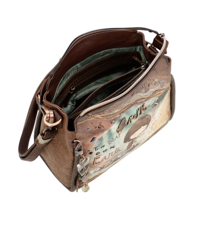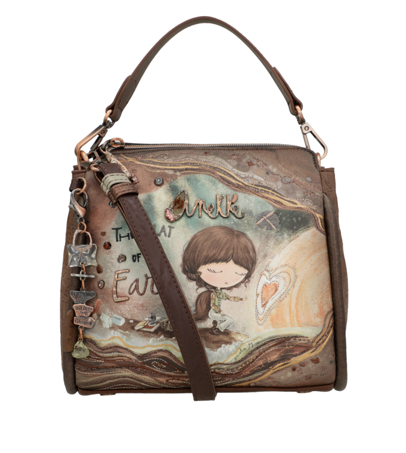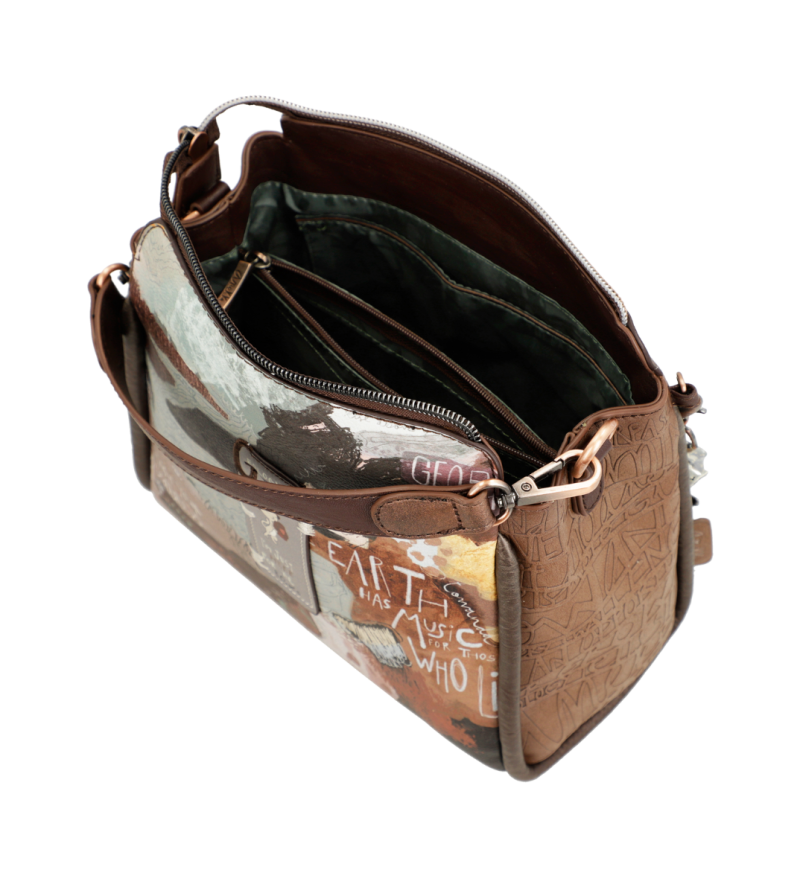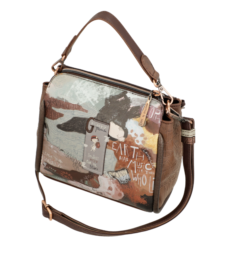 Вид:Висококачествена еко кожа Вид на затваряне:Цип Джобове:1 основен,2 вътрешни с цип и един без цип за мобилен телефон Тип дръжка:1 регулируема дълга дръжка и 1 за рамо Размери: 20x19x11 см Вътрешен състав:100% полиестер