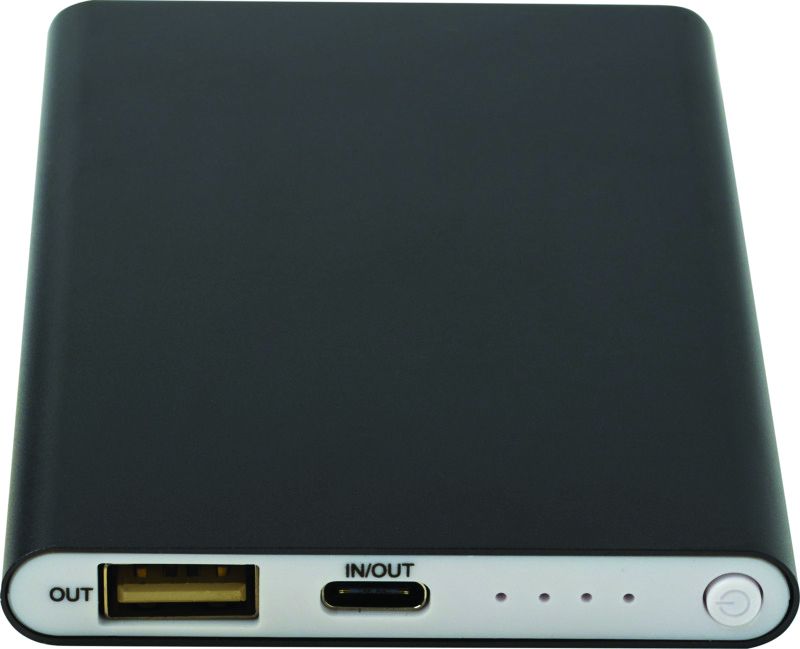 Рециклиран алуминий.4000 mah. 2 порта Type-C input/output 5V.Възможност за зареждане на 2 устройства едновременно.12 x 6 x 1 cm
