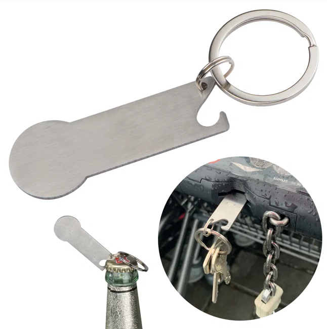 Ключодържател с отварачка и вграден жетон, сив