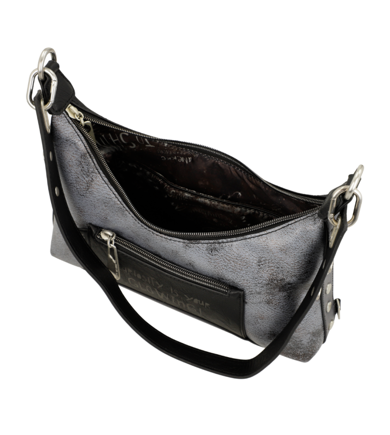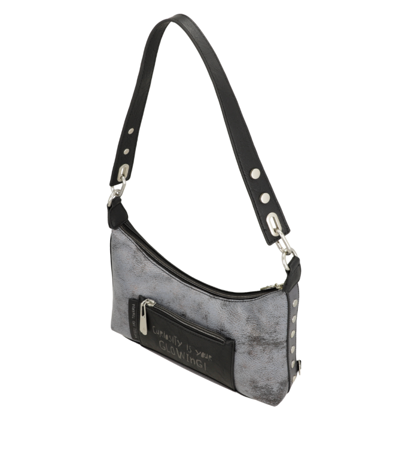 Вид на затваряне: Цип Джобове: 1 основен с цип, 1 заден с цип, вътрешен: 1 за мобилен телефон и 1 с цип Тип дръжка: дръжка за рамо Размери: 28 х 20 х 5 cm Вътрешен състав: 100% ПОЛИЕСТЕР Външен състав: 100% PU