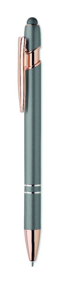От рециклиран алуминий. Розови клип и връх. Гумиран накрайник за touch screen. С механизъм