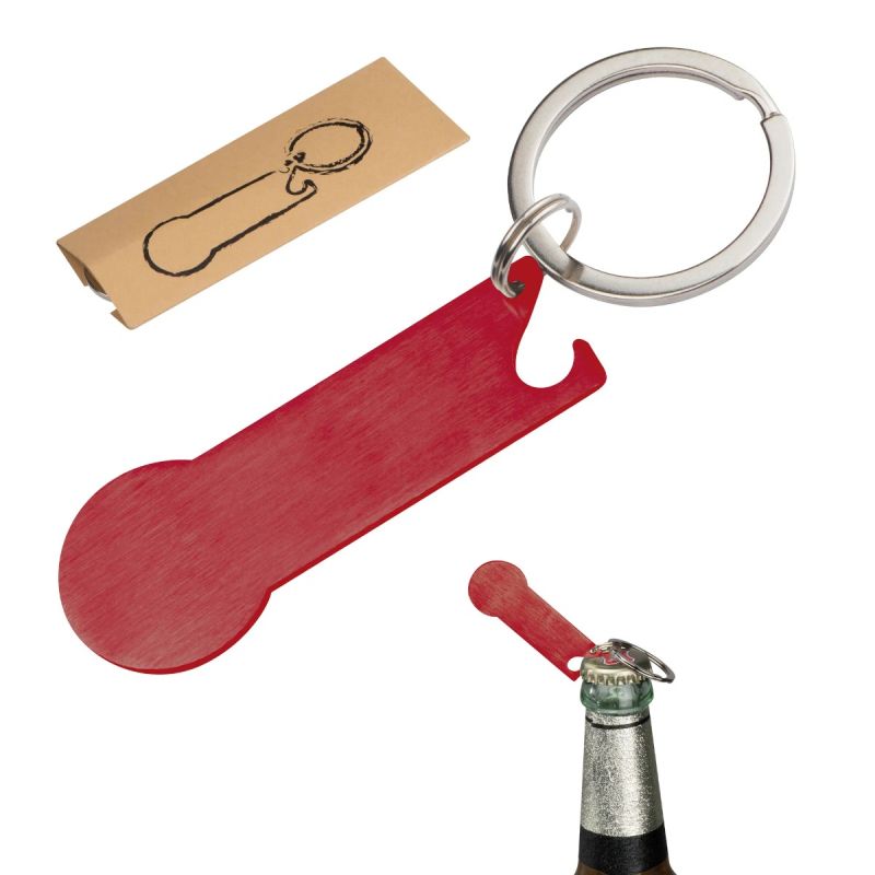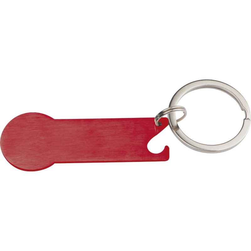 Ключодържател с отварачка и вграден жетон, червен