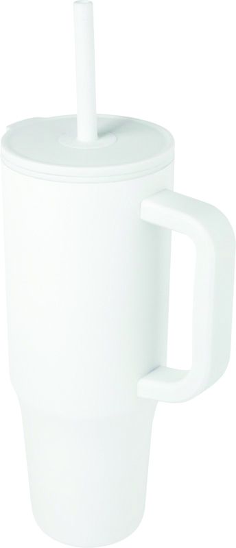 Чаша с капак и сламка, двустенна, 900ml, БЯЛ