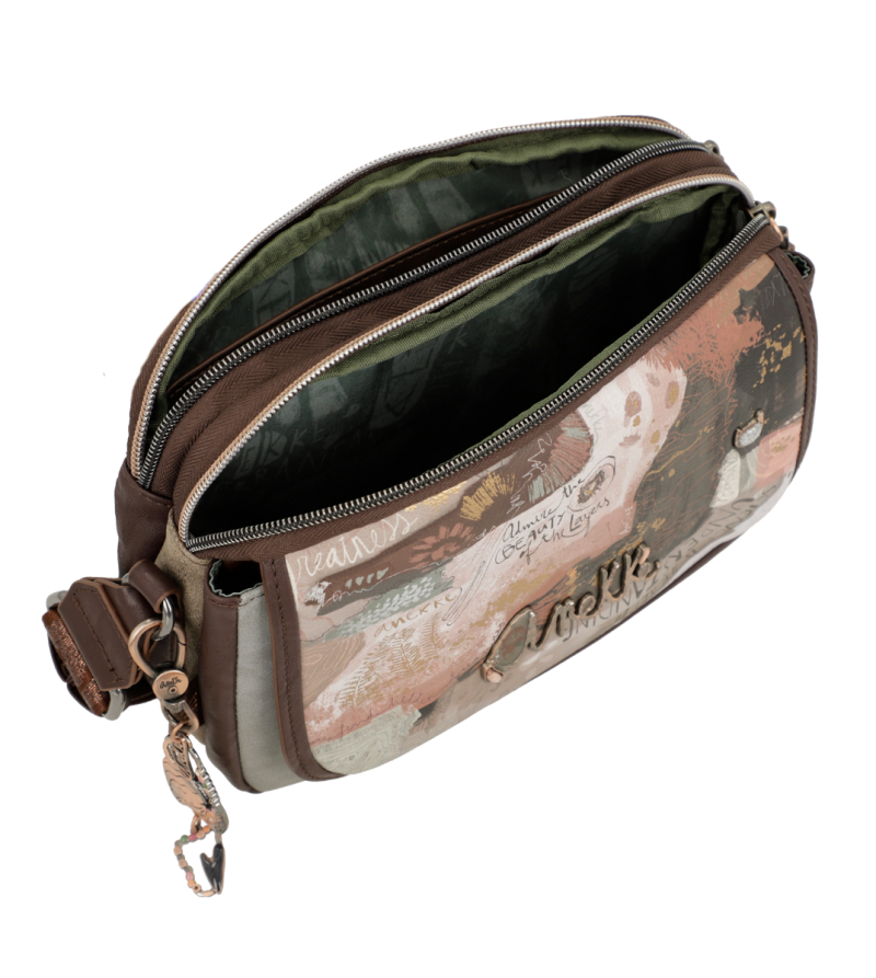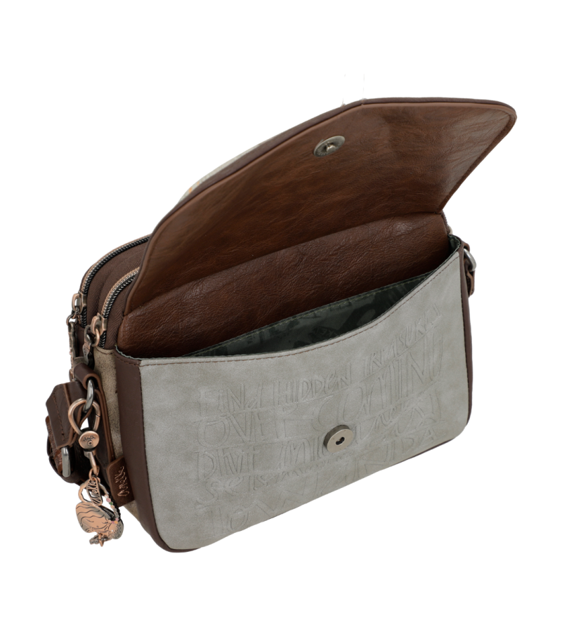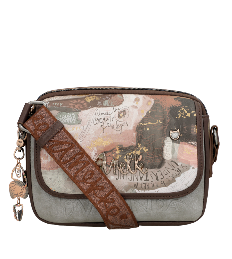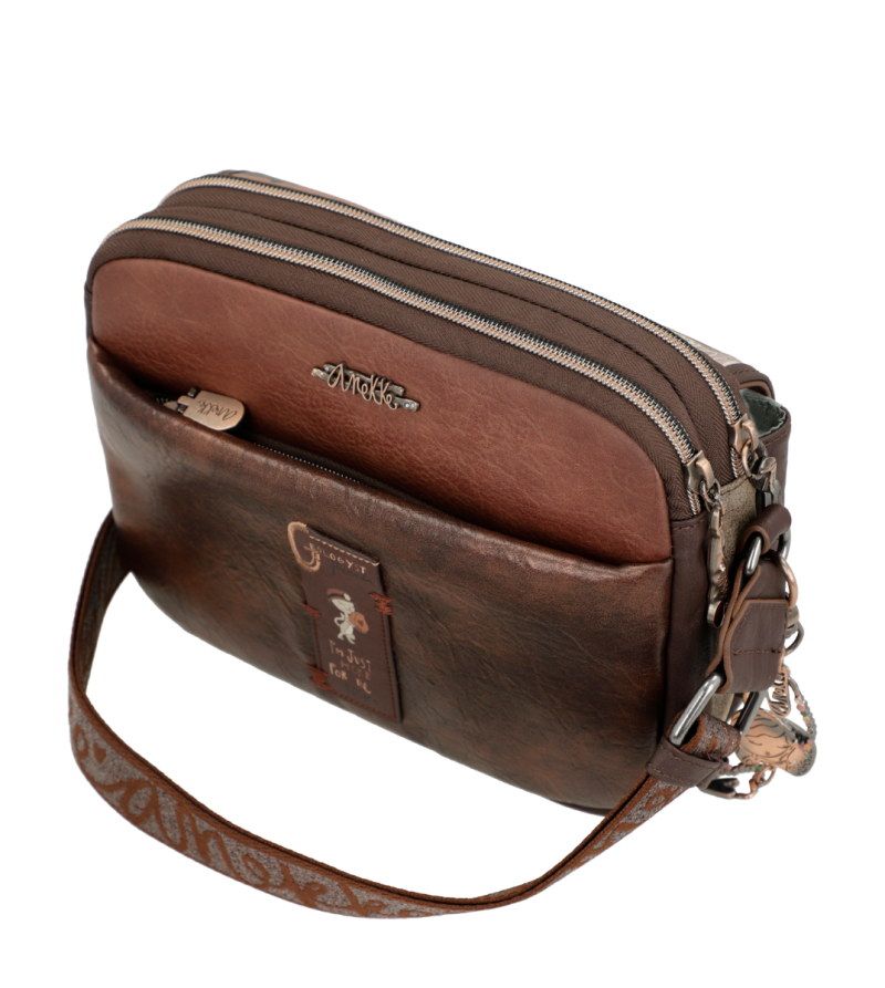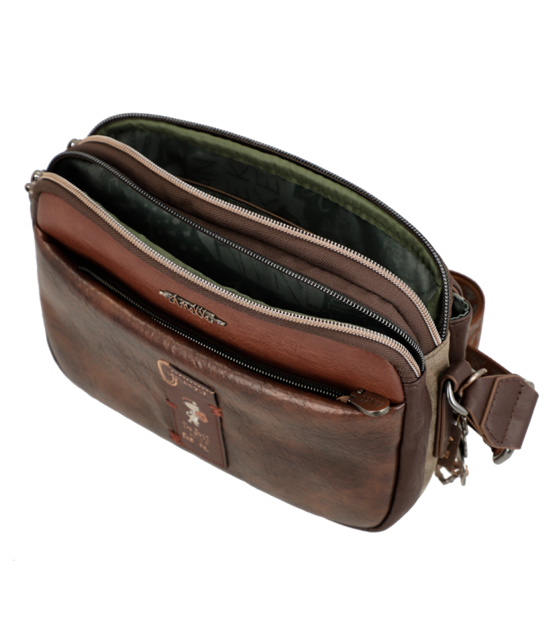 Вид: Висококечествена еко кожа Вид на затваряне: Тик - так и цип Джобове: Един с тик - так (капак) и два основни с цип, заден с цип Дръжки: 1 дълга регулируема дръжка Размери: 25 x 18 x 8 cm Допълнителен аксесоар