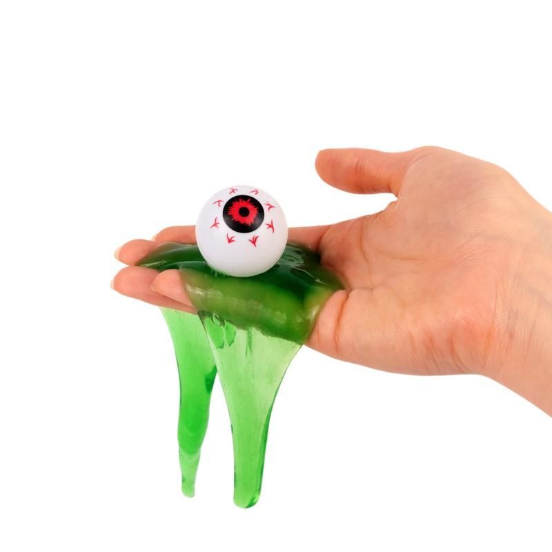 Страхотна, лепкава слуз с око в практичен контейнер. Просто я изсипете обратно в контейнера след игра и го затворете, за да предотвратите изсъхването на слузта. Това гарантира дълготрайно, лепкаво забавление за всички възрасти. Размер на контейнера приблизително 4,8 см, височина - приблизително 6,0 см. Предлага се в 3 цвята на слузта: зелен, червен, оранжев.
