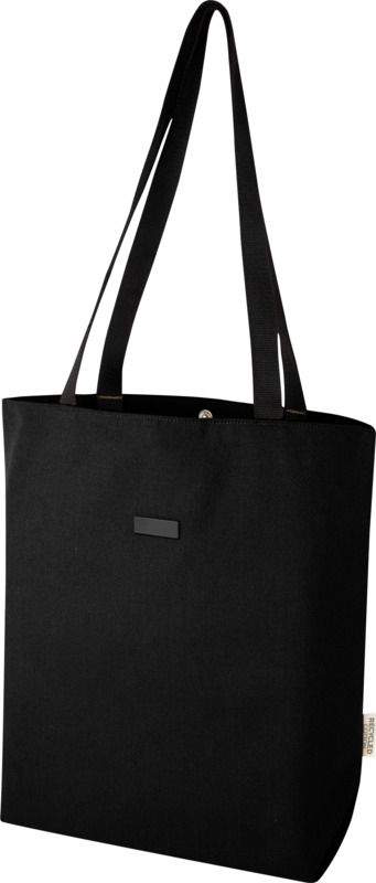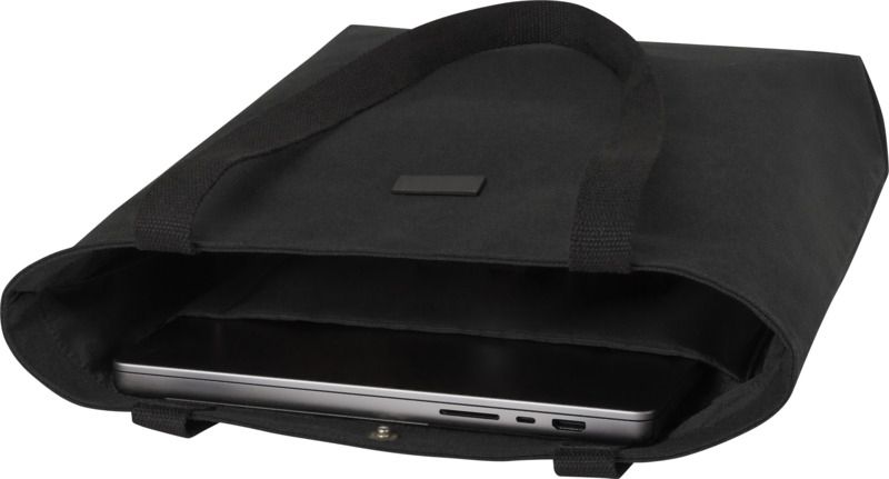 Рециклиран памук. Подплатено отделение за лаптоп 15". Два вътрешни джоба за телефон, портфейл или аксесоари. Закопчаване с копче. Декоративна метална пластина. 39 x 11 x 39.5 cm
