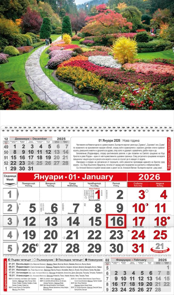 Стенен работен календар КС 13 с цветна глава,1секция, No 3