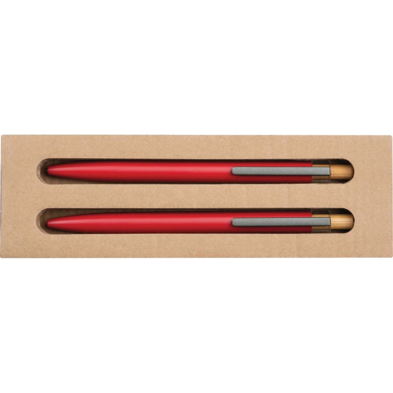 Комплект химикалка и автоматичен молив от рециклиран алуминий, ЧЕРВЕН