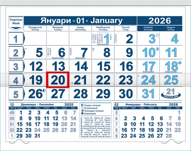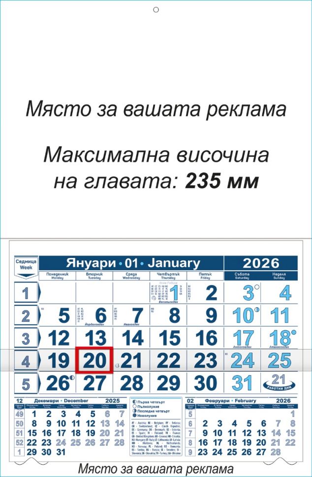 Стенен работен календар Компакт 6, 1 секция, тсин/свс
