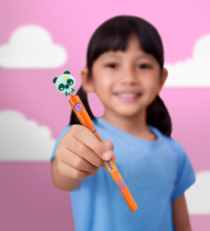 Представяме ви перфектната игрива химикалка, която да занимава нервните ръце! Гледайте как Pally Panda и Piggy Pig се въртят - перфектна комбинация от практичност и релакс. Чудесни за деца от всички възрасти!