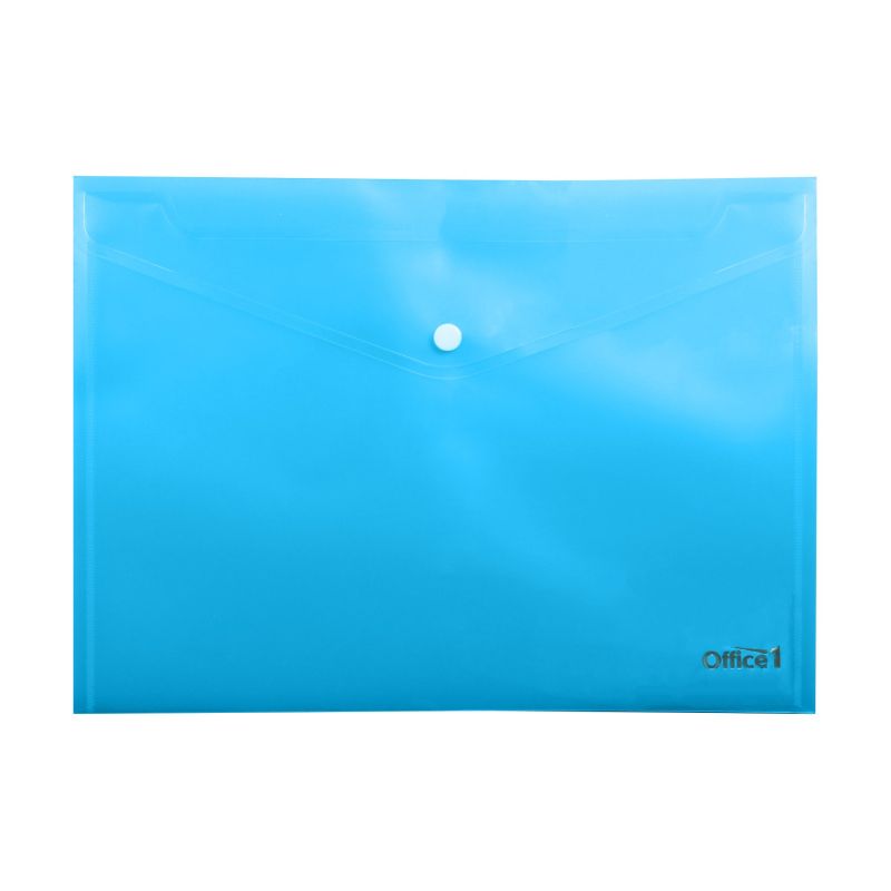 Office 1 Папка, А4, с копче, прозрачна, синя