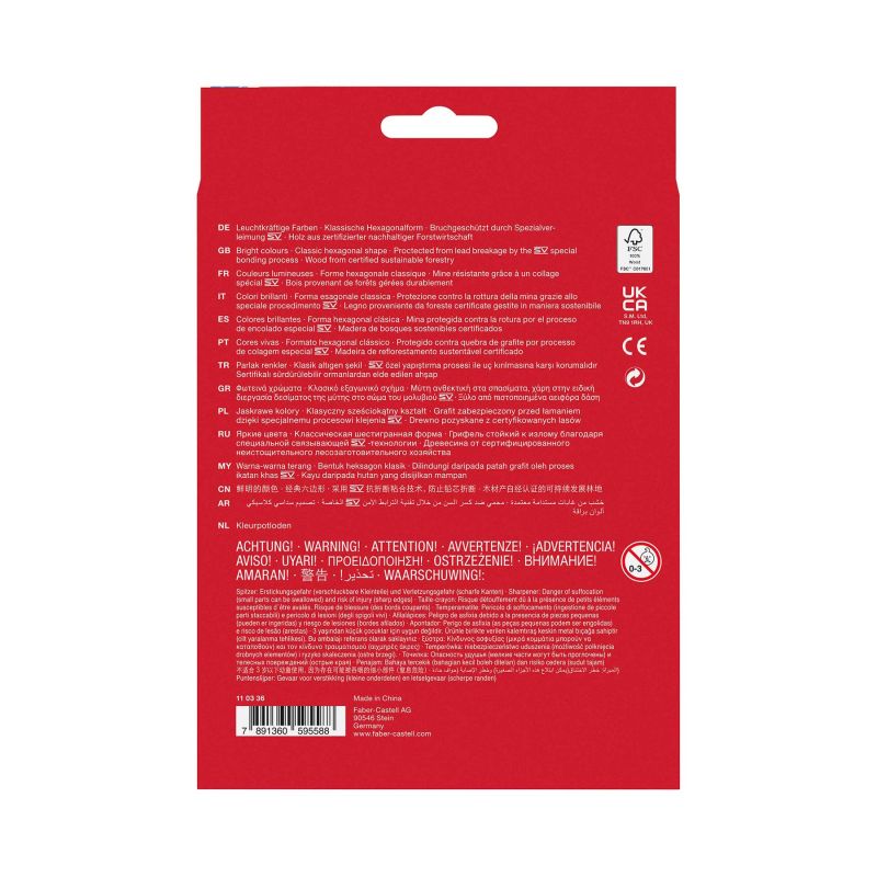 Цветните моливи от серия „Замък“ са с класически дизайн и изцяло въплъщават духа на Faber-Castell. Те са със стандартен размер и шестоъгълна форма. Отличават се с ярки и наситени цветове.