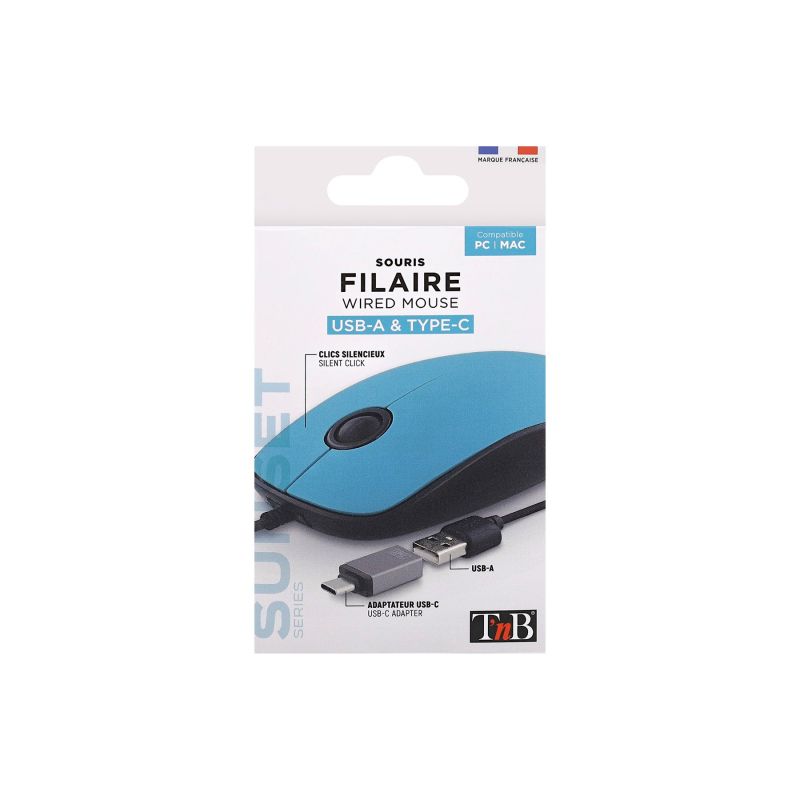 Мишка TNB Sunset, с кабел, USB Type-A, с адаптер USB Type-C, 3 бутона, синя