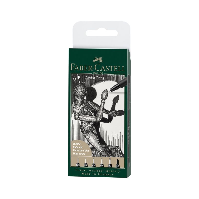 Faber-Castell Тънкописец Pitt, XXS, XS, S, F, M, черен, 6 броя