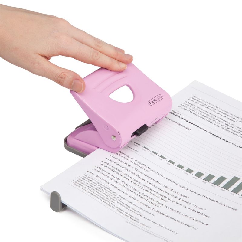 Перфоратор за хартия с два отвора и регулируем ограничител.