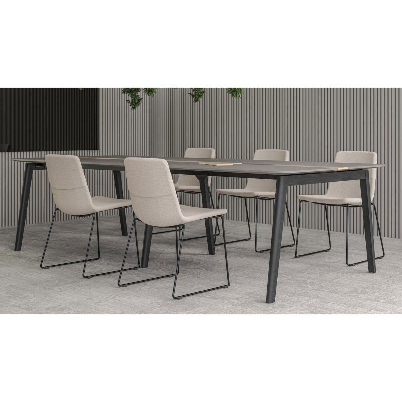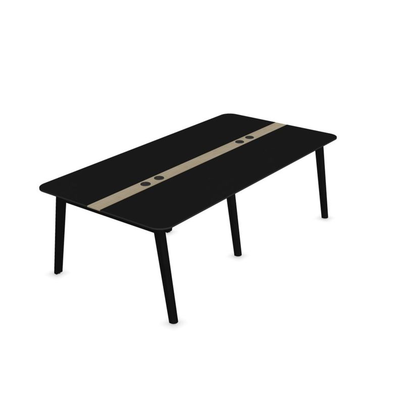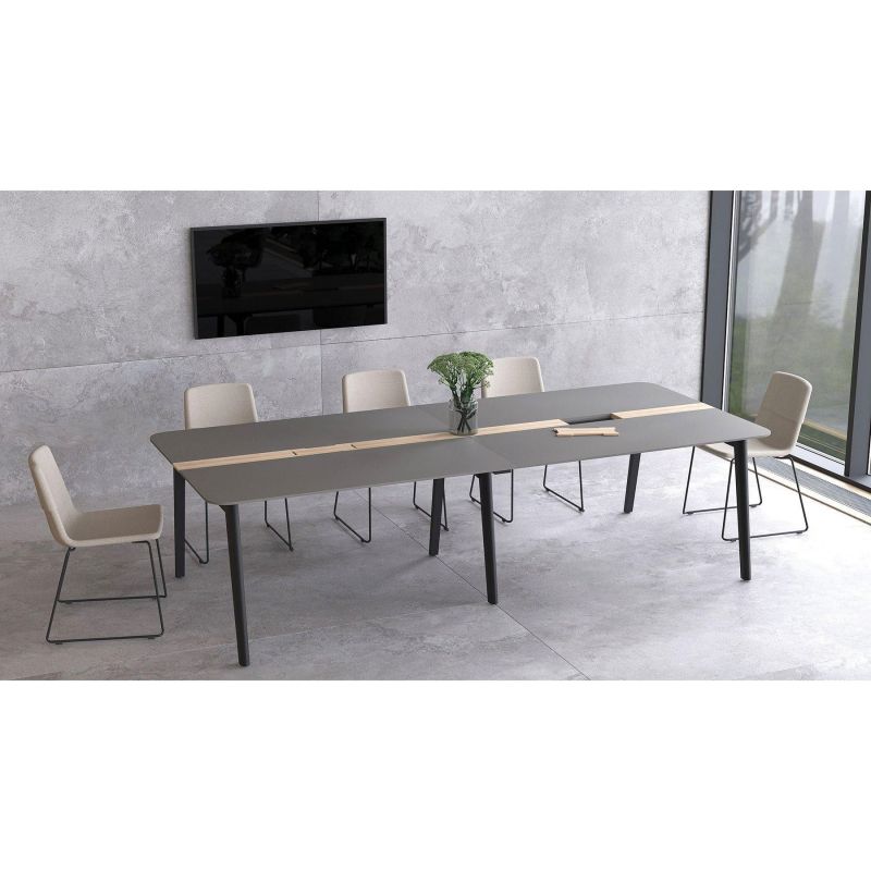 Заседателна маса Narbutas Nova Wood, 2400 x 1200 x 740 mm, правоъгълен плот, MDF 26 mm, HPL черен плот, черни дървени крака