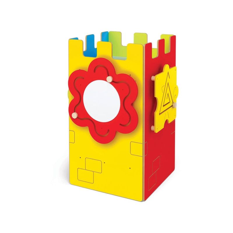 Децата ще се забавляват и играят в своя кът за игри с форма на замък. Замъкът разполага с 4 различни стени и 4 различни панела: цвете с безопасно огледало, част от пъзел с квадратен лабиринт, част от пъзел с триъгълен лабиринт, двустранен лабиринт.