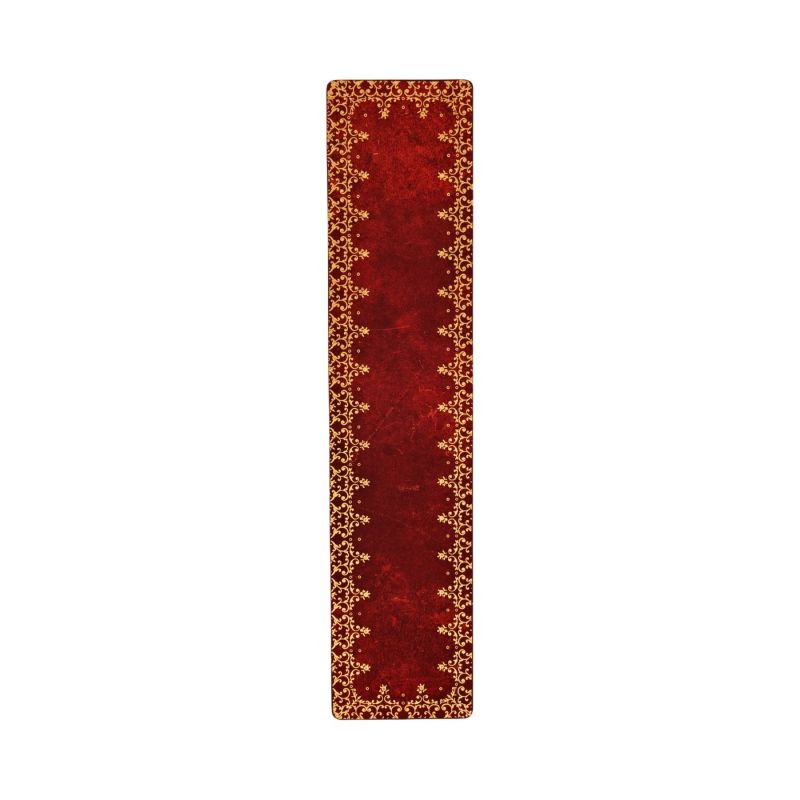 През Ренесанса кожените подвързии често били боядисвани в богати нюанси на червено, за да подчертаят сложните златни декорации, които ги украсявали. Нашият фолиран книгоразделител е създаден в този дух, улавяйки яркостта и лекотата на дизайна, характерни за тези антикварни книги.