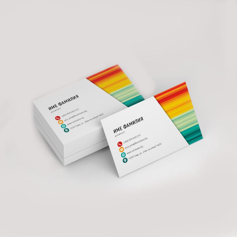 Визитки, дигитален печат, 350 g/m2, двустранни, пълноцветен печат, с матов ламинат, 100 броя
