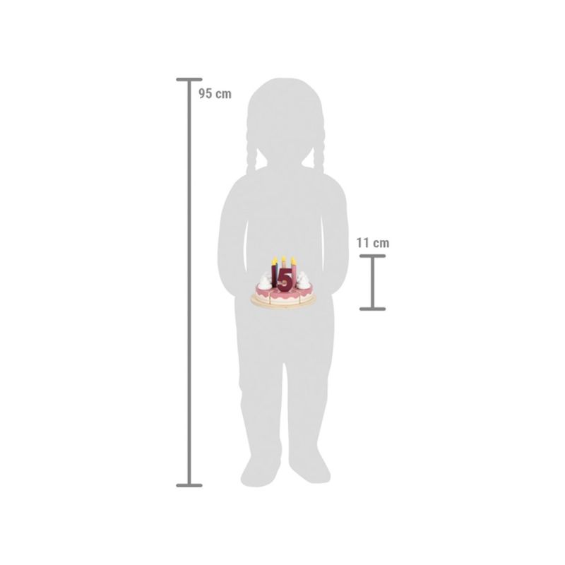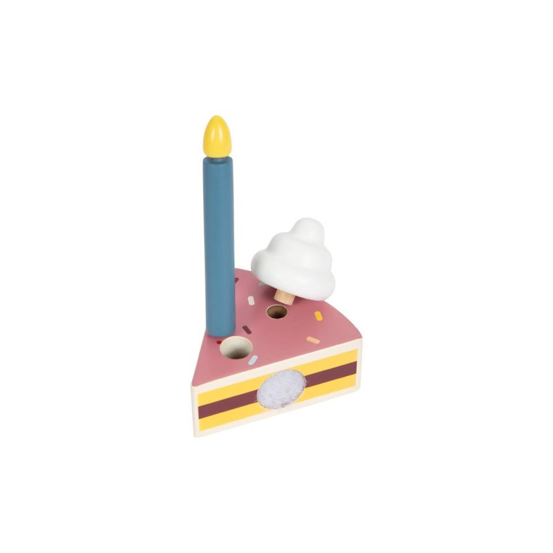 Тортата за рожден ден е задължителна! Независимо дали като декорация на празничната маса или за ролеви игри в детската стая – тази торта с крем и цветни пръчици, изработена от сертифицирано дърво привлича погледите на всяка маса! Велкро парчета държат торта заедно и могат лесно да се разделят с помощта на лопатката, което тренира двигателните умения и координацията око-ръка по забавен начин.
