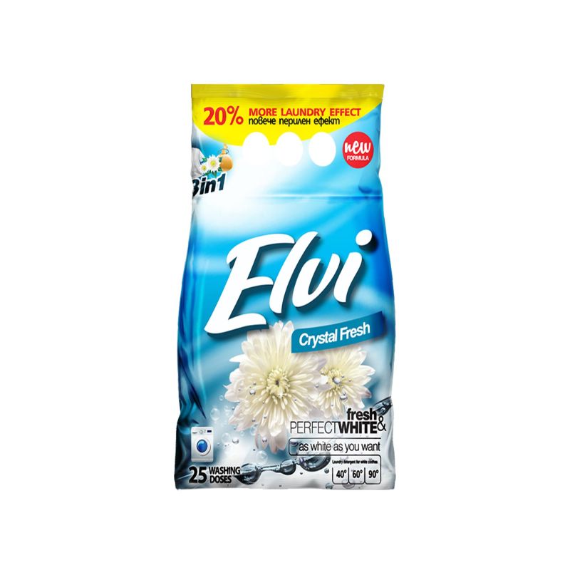 Перилен препарат Elvi, прах, за бяло пране, кристална свежест, 2 kg