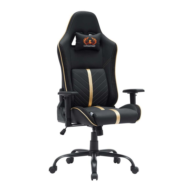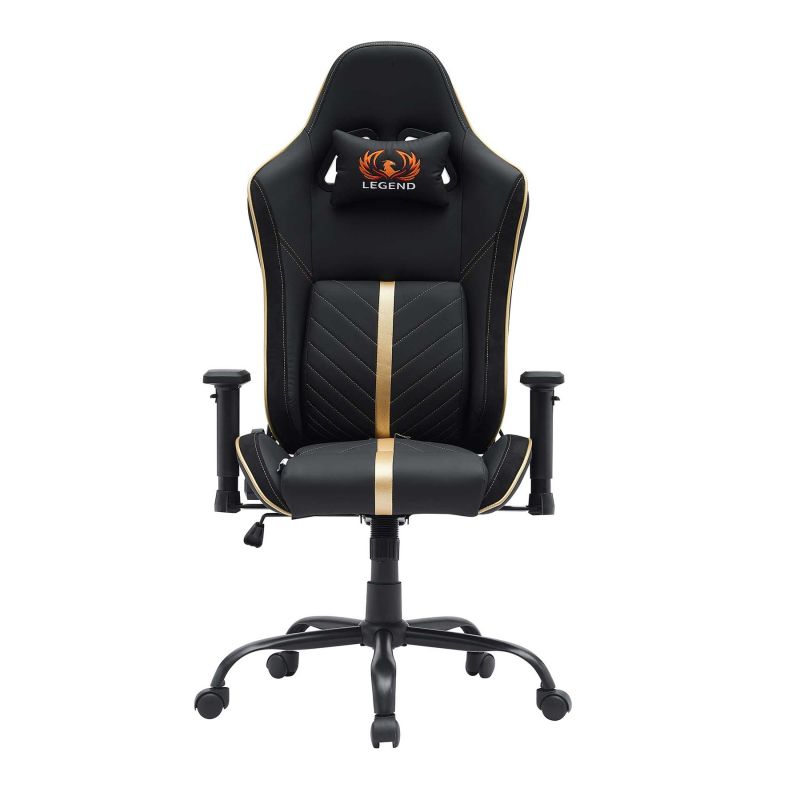 Геймърски стол RFG On Legend, екокожа, Butterfly механизъм, метална основа, до 150 kg, черно-златист