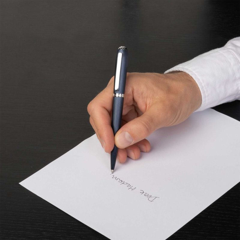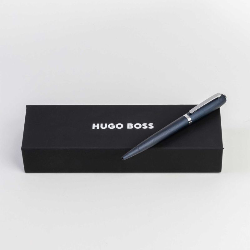 Hugo Boss Химикалка Contour Brushed, в кутия, тъмносиня