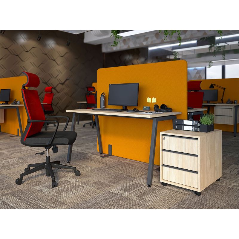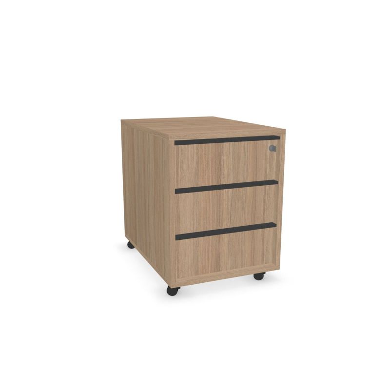 Контейнер за бюро Narbutas Nova A, 428 x 600 x 560 mm, с колелца, ПДЧ, меламин кехлибарен дъб, тъмносива вградена дръжка