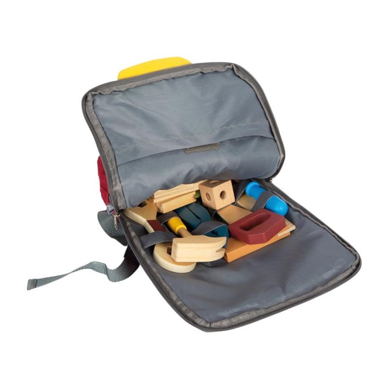 - Удобна раница за съхранение: Всички инструменти се съхраняват в удобна дървена раница, която улеснява децата да носят своите инструменти навсякъде със себе си. Това я прави идеална за игра както вкъщи, така и при пътувания.